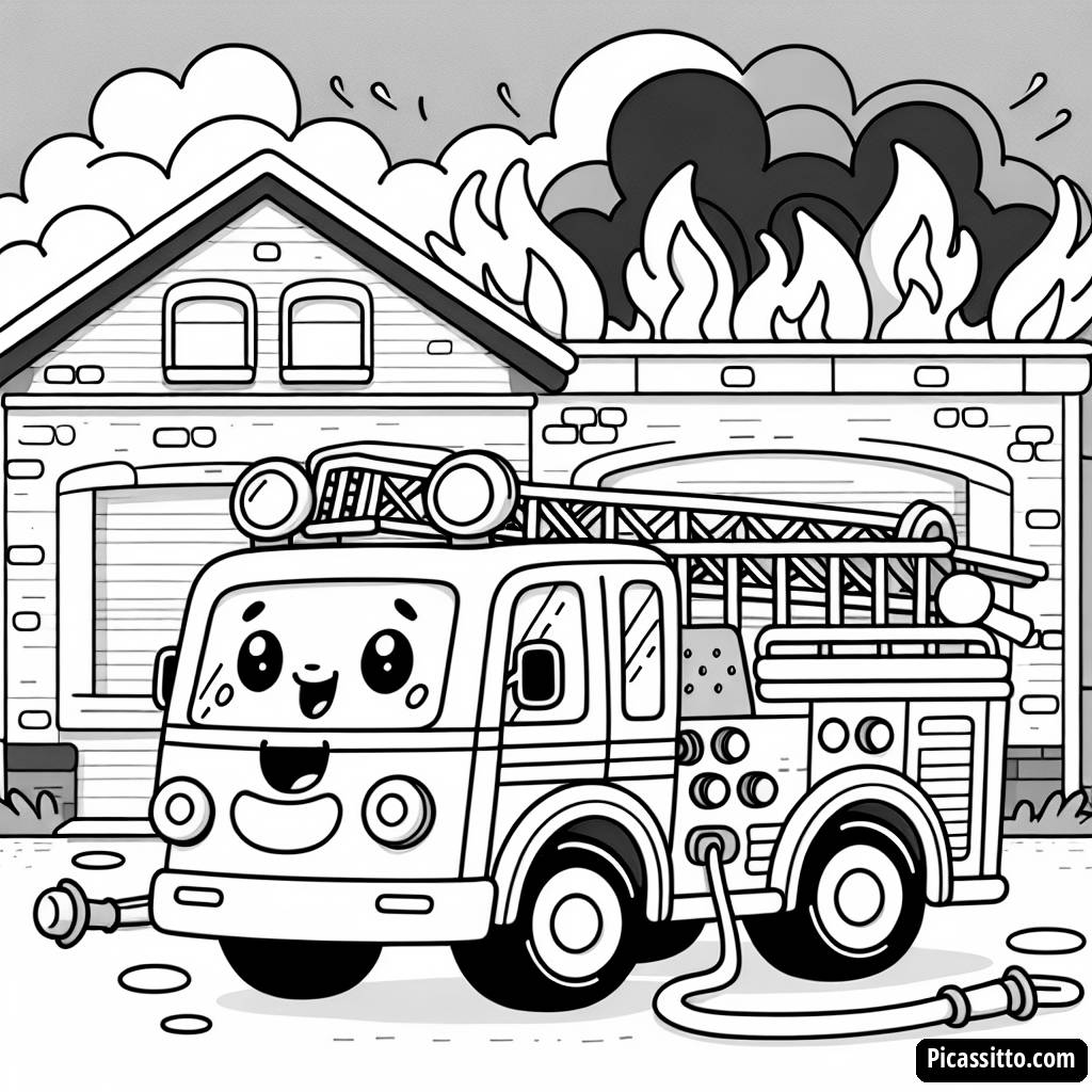 Laden Sie diese kostenlose Malvorlage eines fröhlichen Feuerwehrautos herunter und drucken Sie sie aus! Perfekt für kleine Künstler, die Notfahrzeuge lieben.