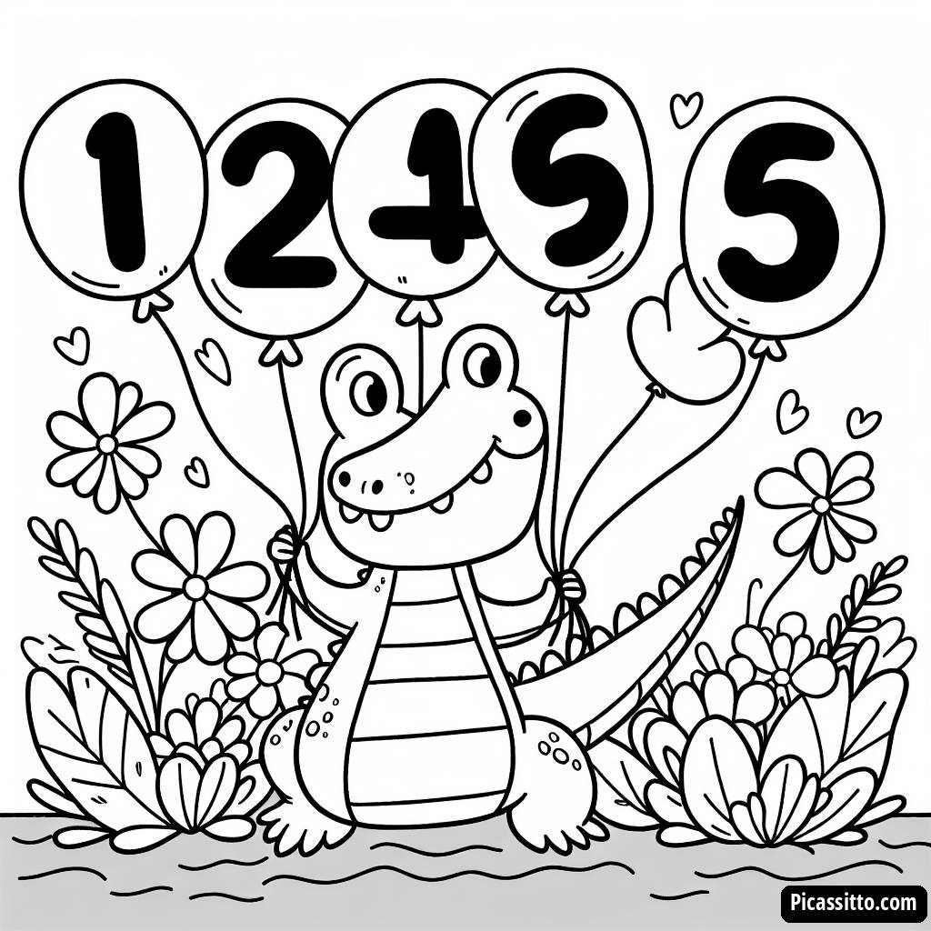 Freundliches Krokodil Malvorlage mit Zahlenballons