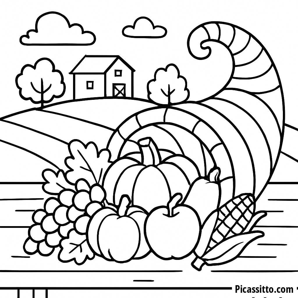 Genießen Sie diese kostenlose, druckbare Färbungsseite des Erntekorbs zu Thanksgiving, perfekt für Kinder, um die Erntezeit mit leuchtenden Farben zu feiern!