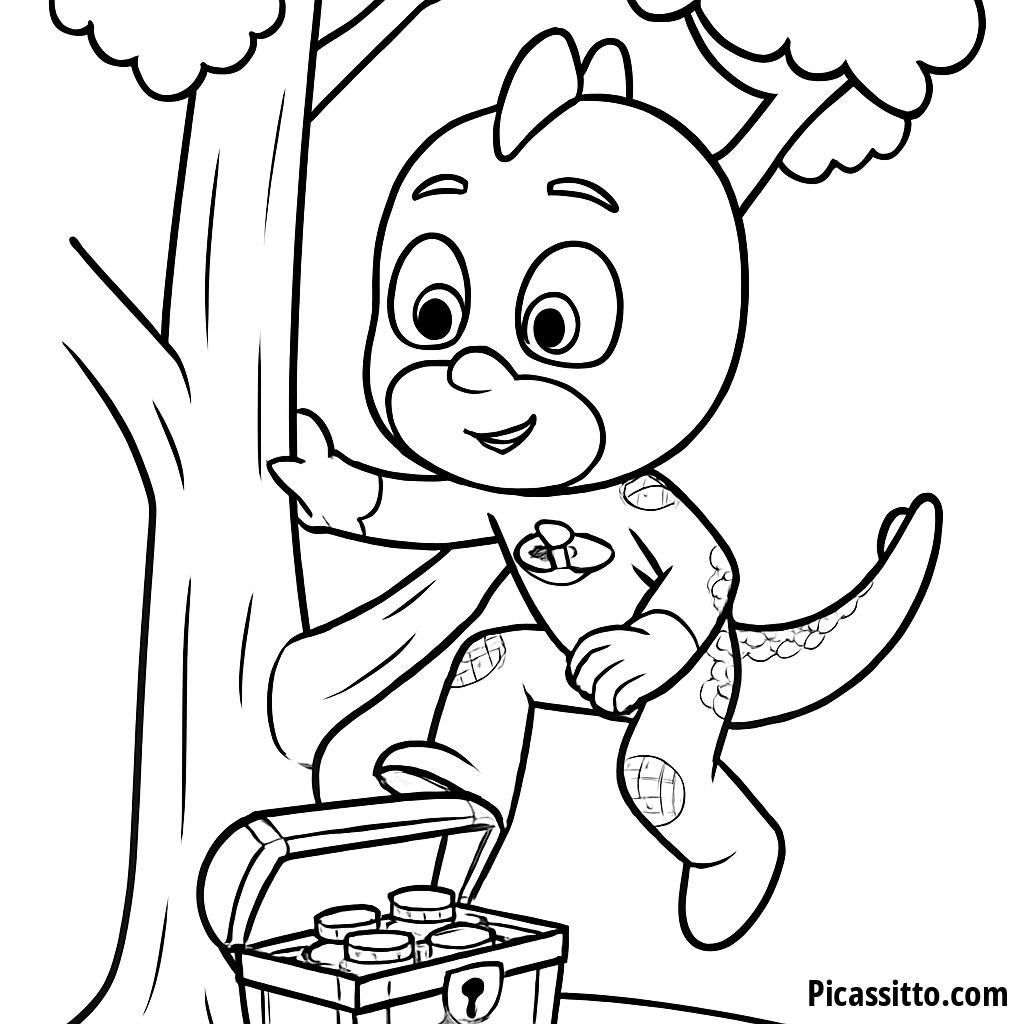 Join Gekko on an exciting adventure as he climbs a tree in search of hidden treasure! This coloring page is free and printable for endless fun.