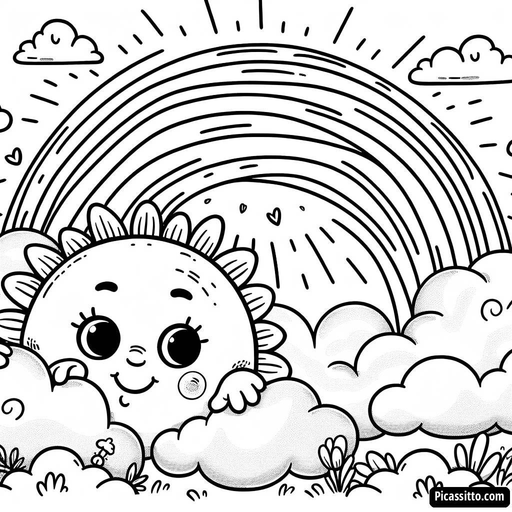Bring joy to your day with this free and printable Smiling Sun coloring page! Perfect for kids who love sunny skies and vibrant rainbows.