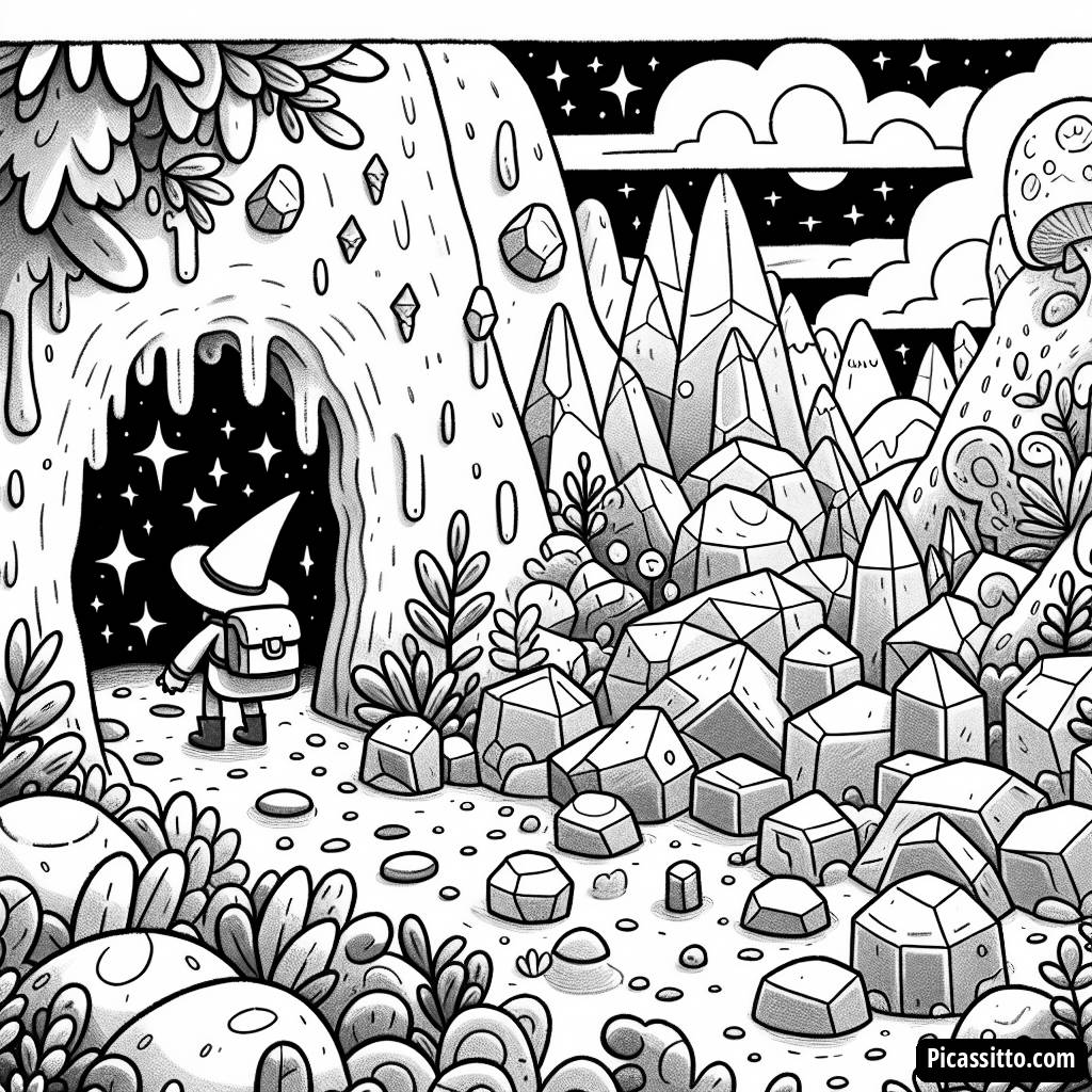 Enjoy this free and printable coloring page of Steve exploring a cave filled with colorful Minecraft ores. Perfect for Minecraft fans and creative kids!