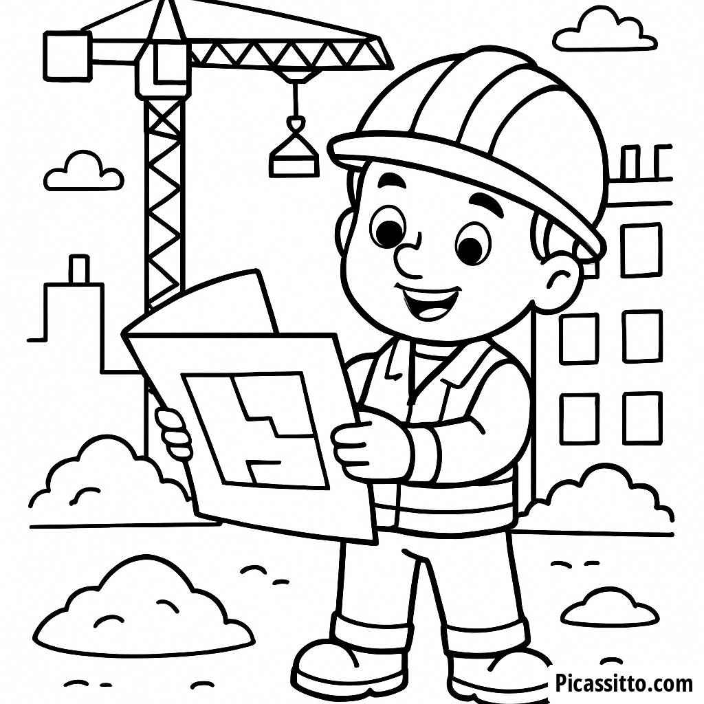 Descarga esta página para colorear gratis e imprimible de un alegre trabajador de la construcción, ¡perfecta para los niños que aman la construcción y la arquitectura!