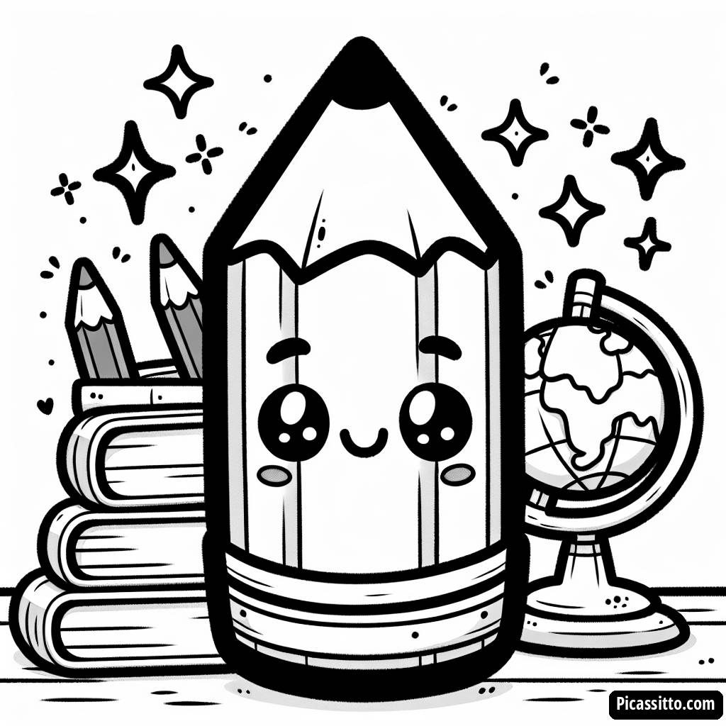 Descarga esta página para colorear de lápiz alegre, gratuita e imprimible, ¡perfecta para jóvenes artistas ansiosos por dar vida a sus útiles escolares!
