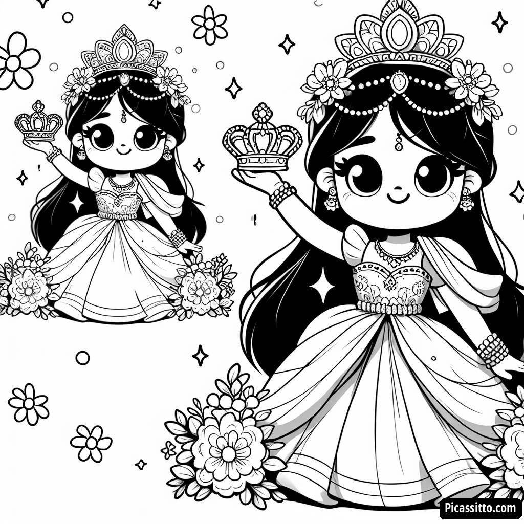 ¡Dale vida a esta encantadora princesa con tus colores! Esta página para colorear es gratuita y imprimible, perfecta para pequeños artistas que aman los cuentos de hadas.