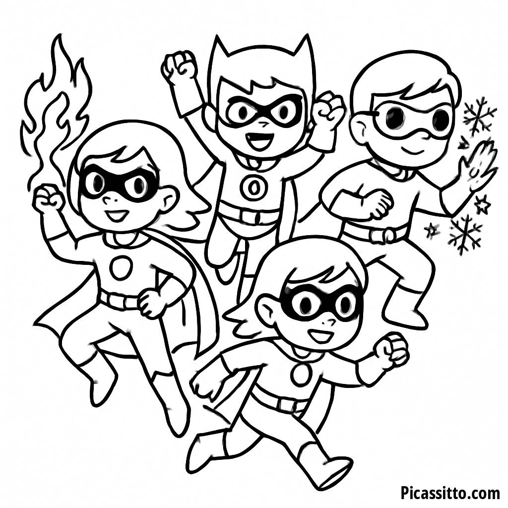 ¡Prepárate para desatar tu creatividad con nuestra página para colorear gratuita del Equipo de Superhéroes en Acción! Cada héroe muestra poderes únicos, ¡lo que la convierte en una divertida aventura para los niños!