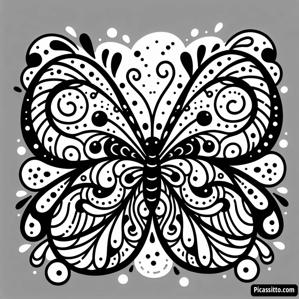 Desata tu creatividad con nuestra página para colorear de mariposa fantástica, ¡gratis y imprimible, llena de patrones en espiral y puntos para diversión sin fin!