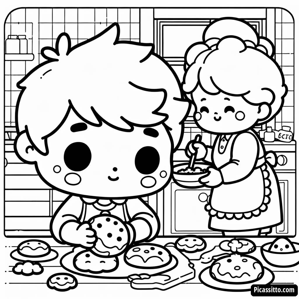 YoYo Horneando Galletas con la Abuela - Página para Colorear Gratis