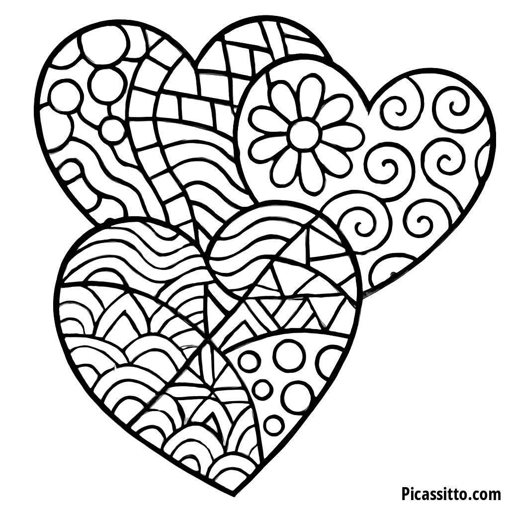 Profitez de cette page à colorier gratuite et imprimable mettant en avant de magnifiques cœurs entrelacés remplis de motifs zentangle complexes et de gribouillis ludiques pour stimuler votre créativité et votre détente.