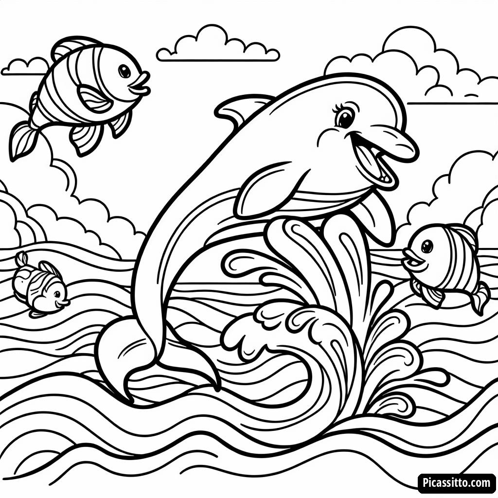 Plongez dans le plaisir avec notre page à colorier de dauphin bondissant, gratuite et imprimable ! Parfaite pour les enfants qui adorent les animaux marins.