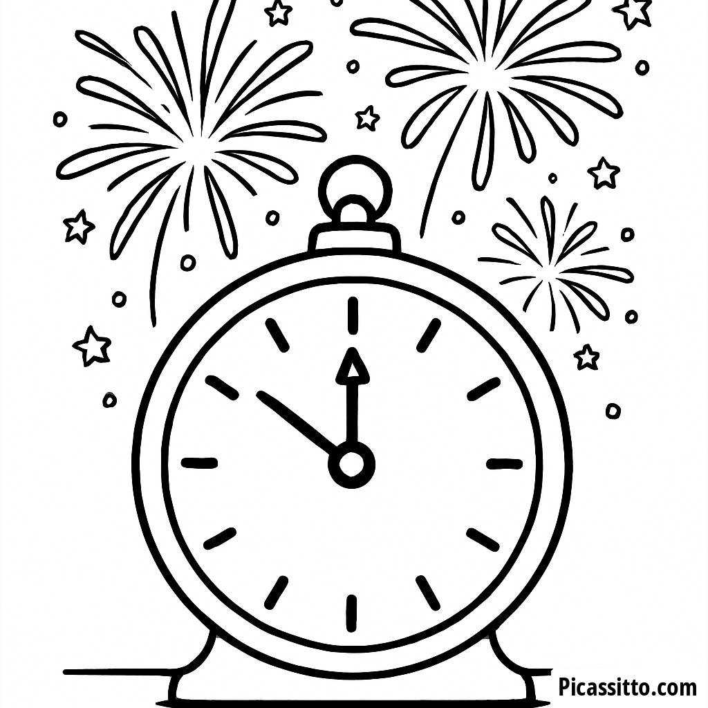 Célébrez le Nouvel An avec notre page à colorier gratuite Magie de Minuit, mettant en vedette une horloge sonnant minuit et des feux d'artifice éblouissants ! Parfait pour que les enfants laissent libre cours à leur créativité.
