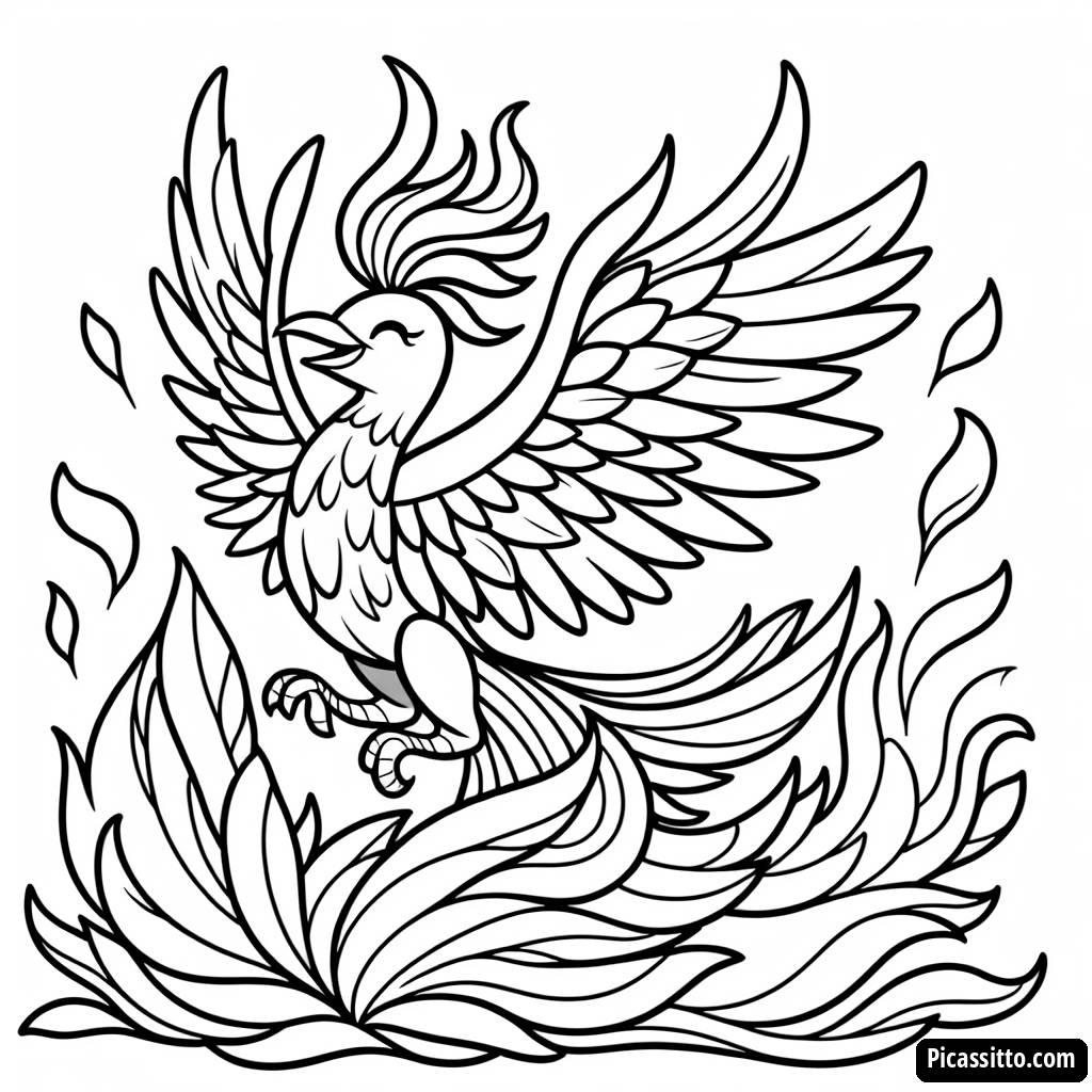 Libérez votre créativité avec cette page à colorier gratuite du Phénix en Élévation, avec des plumes vibrantes et des flammes qui répandent la joie !