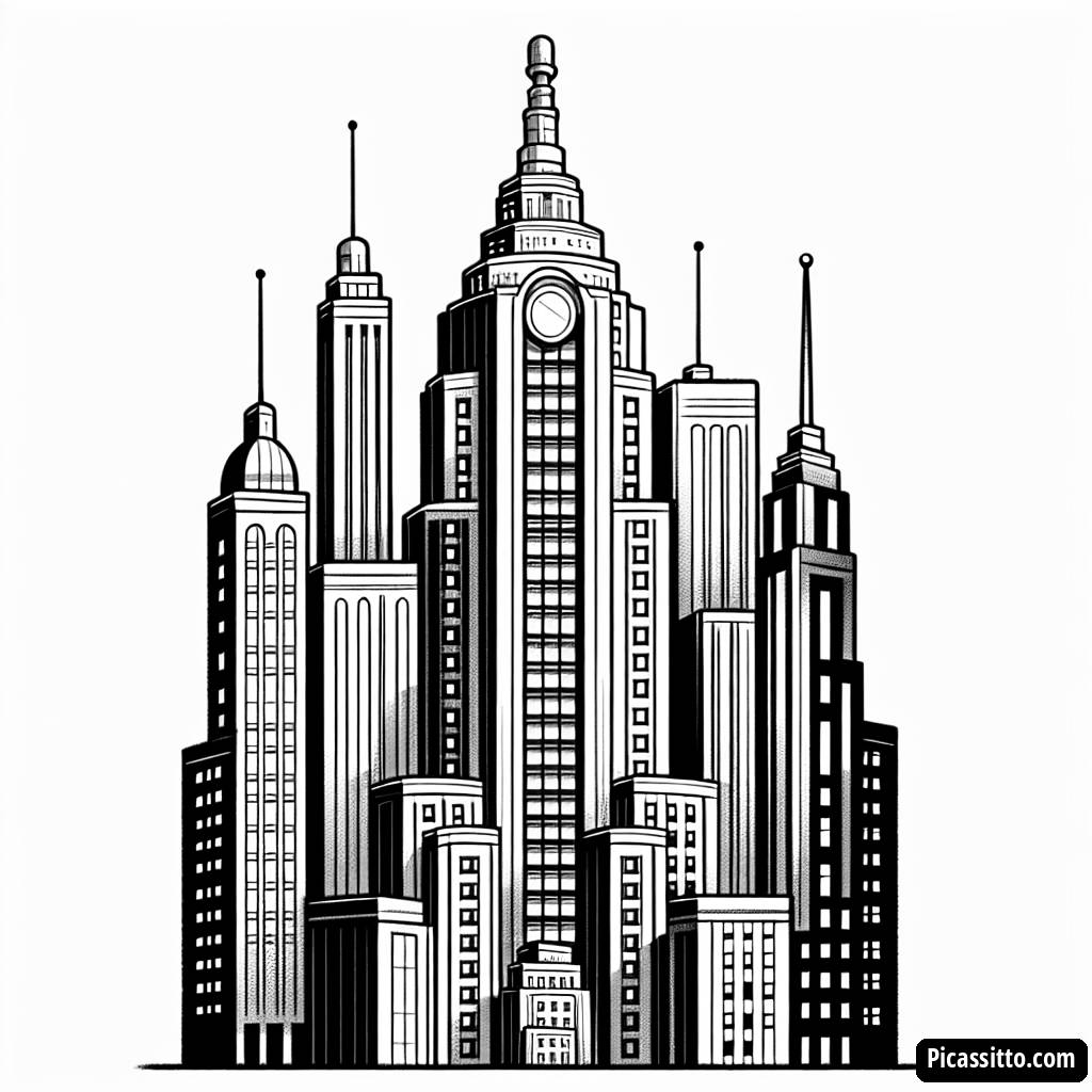 Explorez la skyline urbaine avec notre page à colorier de gratte-ciel gratuite et imprimable ! Parfaite pour les petits architectes et les amateurs de couleurs.