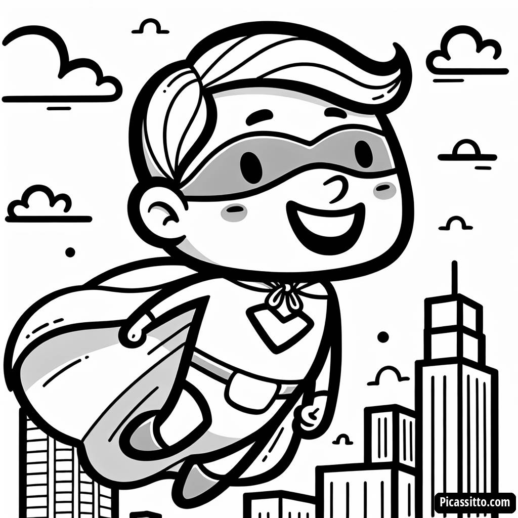 Téléchargez cette page à colorier gratuite et imprimable de superhéros, et laissez votre enfant donner vie à un héros volant au-dessus de la ville animée !
