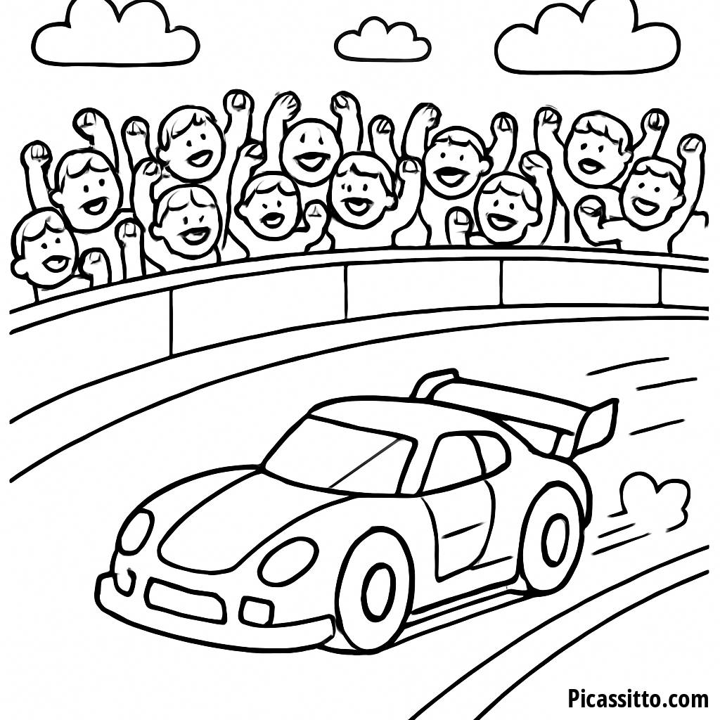 Préparez-vous à vous amuser à grande vitesse avec notre page à colorier gratuite d'une voiture de course rapide sur une piste avec des fans en train d'applaudir !