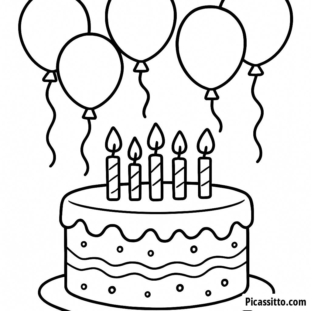 Festeggia con la nostra pagina da colorare gratuita e stampabile della Grande Torta di Compleanno, con palloncini colorati e candeline per illuminare le tue festività di compleanno!