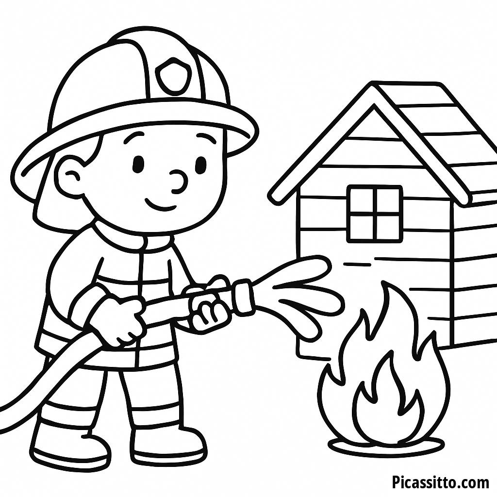 Scarica questa pagina da colorare gratuita e stampabile con un vigile del fuoco coraggioso che spruzza acqua per spegnere un incendio. Perfetta per i bambini che amano i pompieri e i soccorritori!