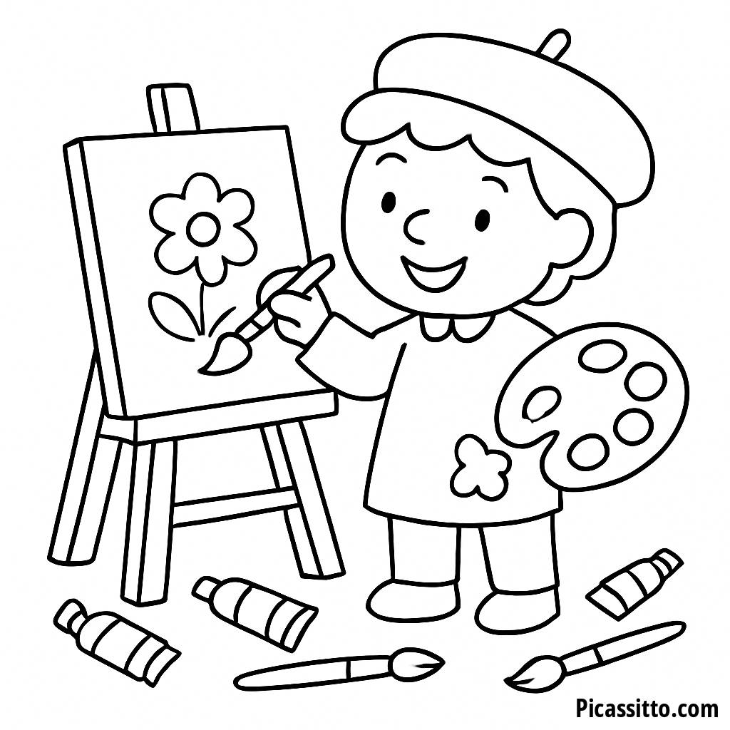Libera la tua creatività con questa pagina da colorare gratuita e stampabile di un artista allegro, perfetta per i piccoli Picasso! Prendi i tuoi pastelli e dai vita a questa scena vibrante.