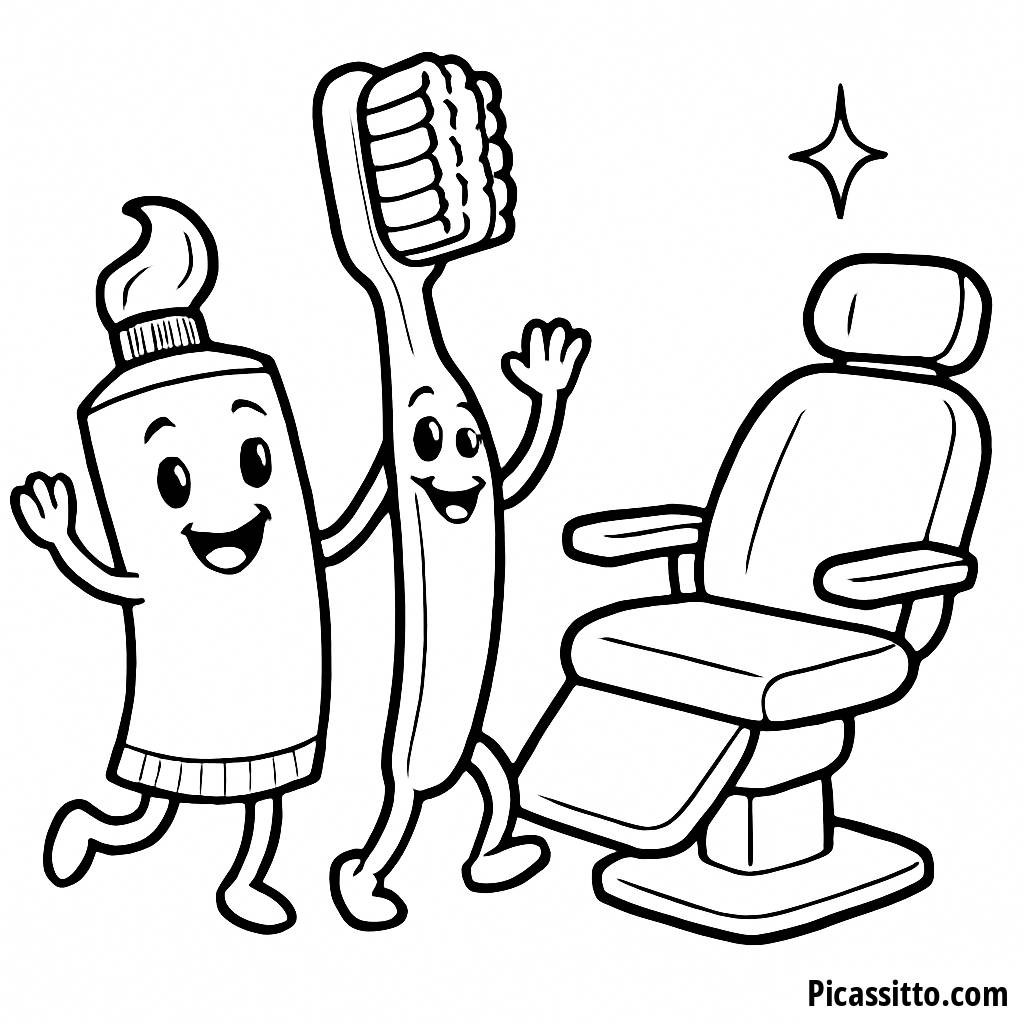 Divertiti con questa pagina da colorare gratuita e stampabile con uno spazzolino e un dentifricio allegri che ballano accanto a una brillante poltrona dentistica! Perfetta per insegnare ai bambini l'igiene dentale divertendosi.