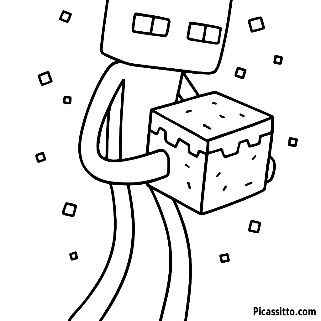 Goditi questa pagina da colorare di Enderman, gratuita e stampabile, che presenta un Enderman che tiene un blocco circondato da particelle viola fluttuanti. Perfetta per i fan di Minecraft di tutte le età!
