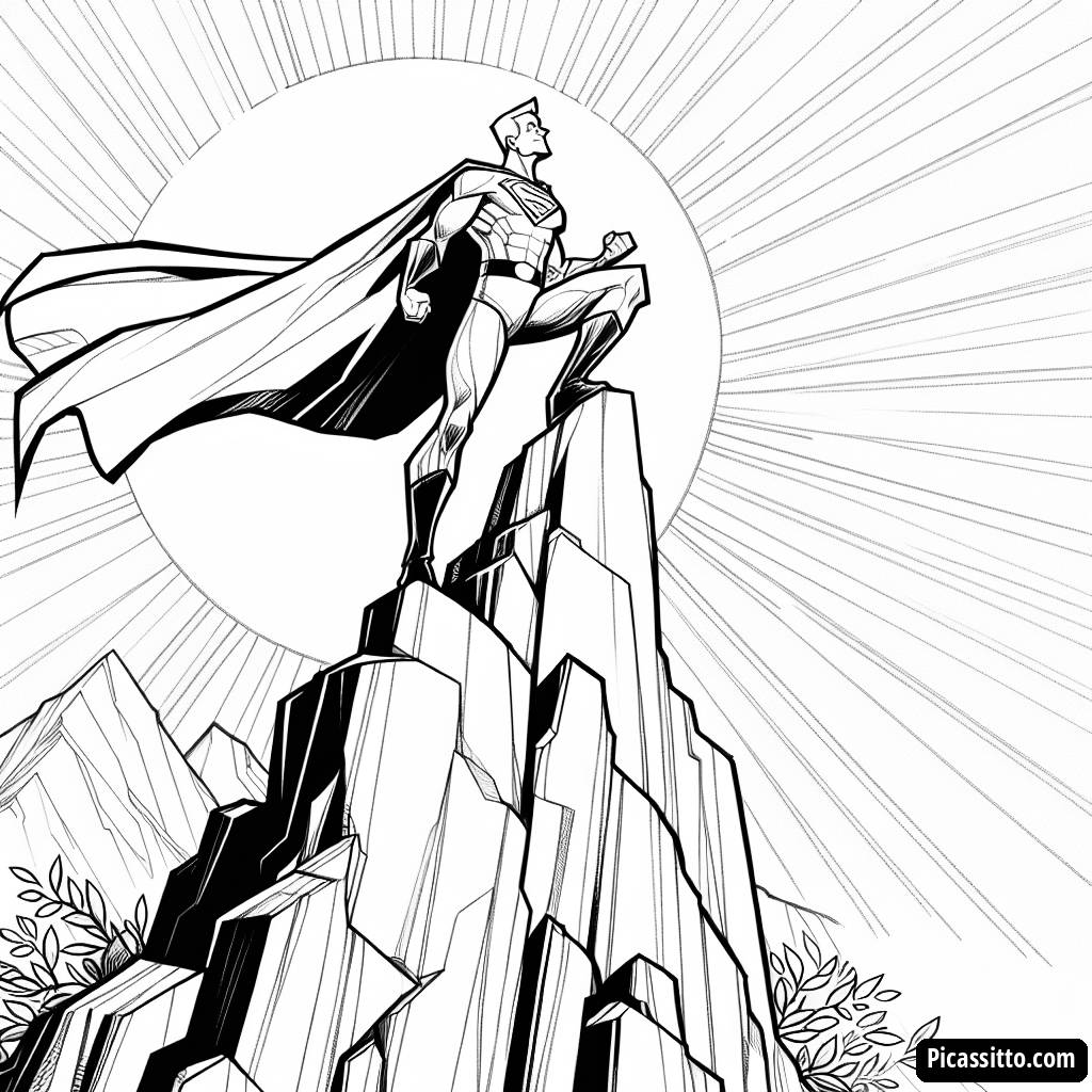 Pagina da Colorare Supereroe: Eroe sulla Montagna