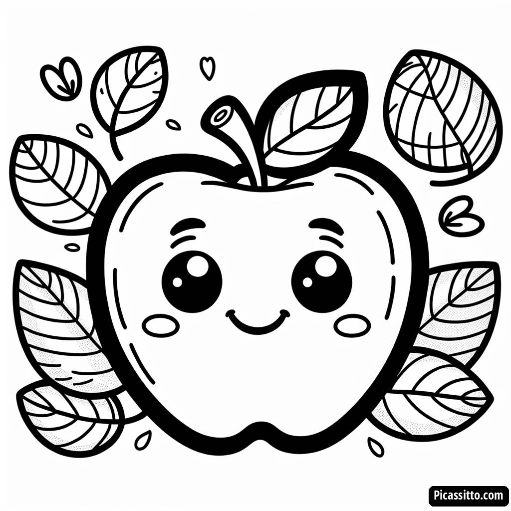 Goditi questa pagina da colorare gratuita e stampabile della mela felice, perfetta per i piccoli artisti che vogliono esprimere la loro creatività circondati da foglie colorate.