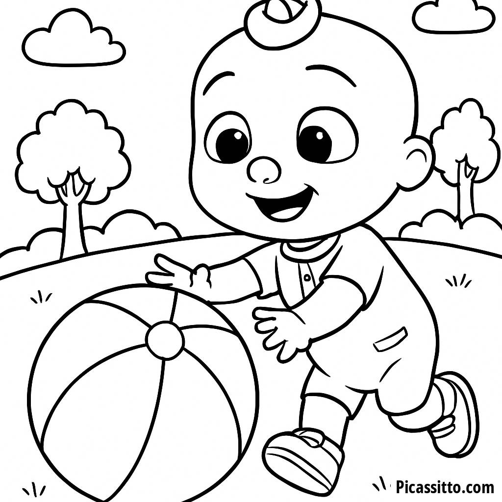 La Giornata Divertente di JJ: Pagina da Colorare Gratuita di JJ che Gioca con una Palla Colorata!