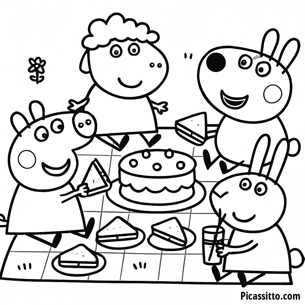 Pagina da Colorare del Picnic di Peppa Pig