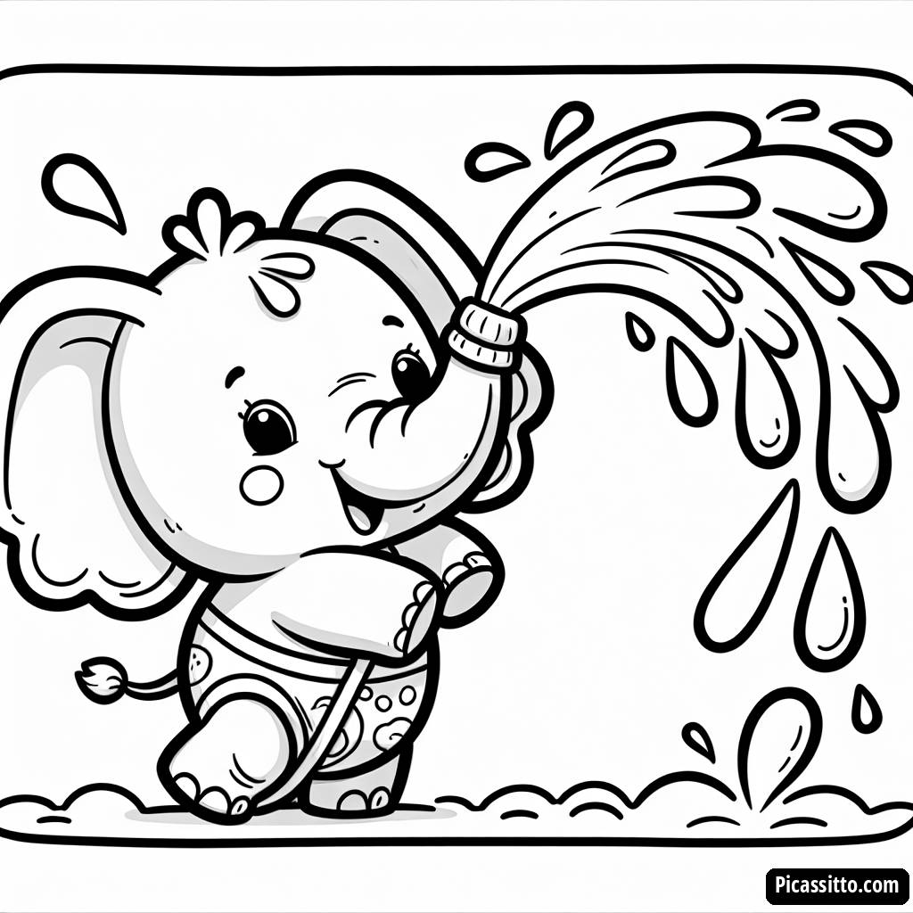 Divertiti con questa pagina da colorare gratuita e stampabile di un elefante giocoso che spruzza acqua con la sua proboscide! Perfetta per i bambini che amano gli animali selvatici.