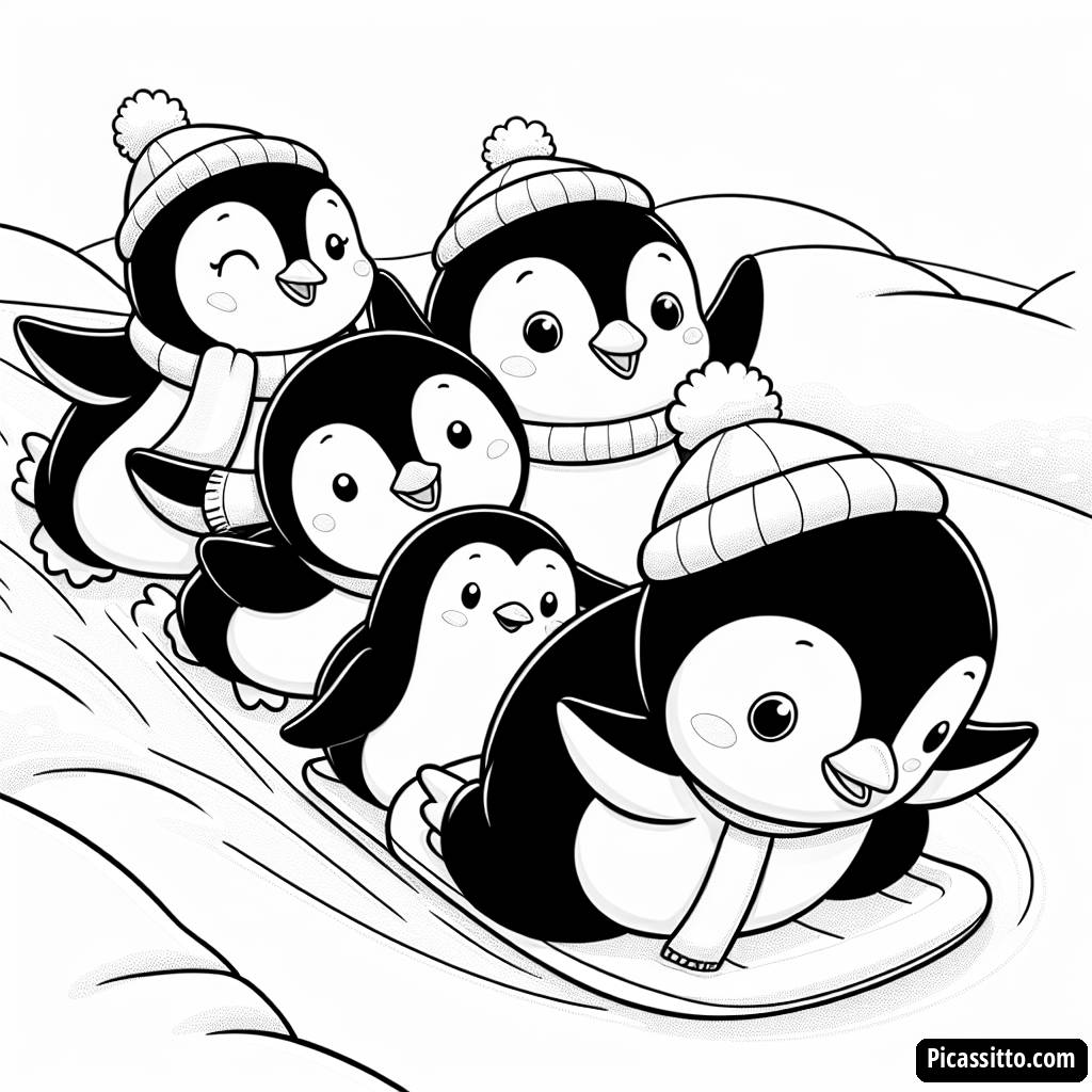Divertiti con questa pagina da colorare gratuita e divertente che presenta un gruppo di pinguini giocherelloni che scivolano sul ghiaccio! Perfetta per far sbocciare la creatività dei bambini.