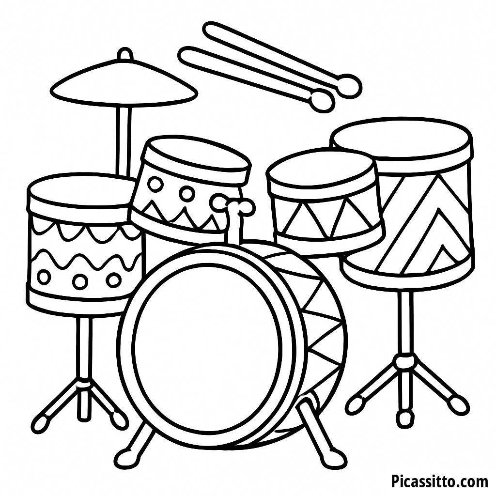 Scarica questa pagina da colorare del batteria gratuita e stampabile, piena di motivi vivaci e un paio di bacchette. Perfetta per i piccoli musicisti che vogliono esprimere la loro creatività!