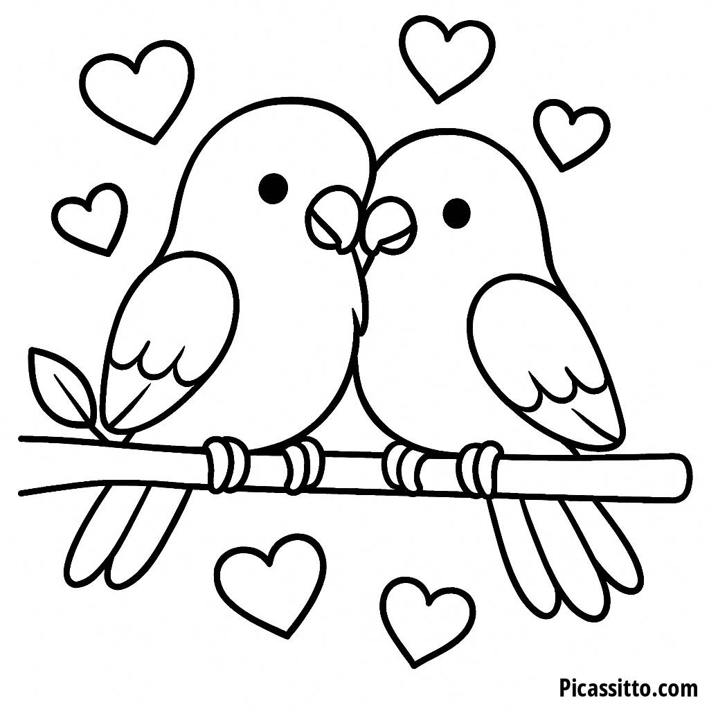Página para Colorir de Pássaros Apaixonados
