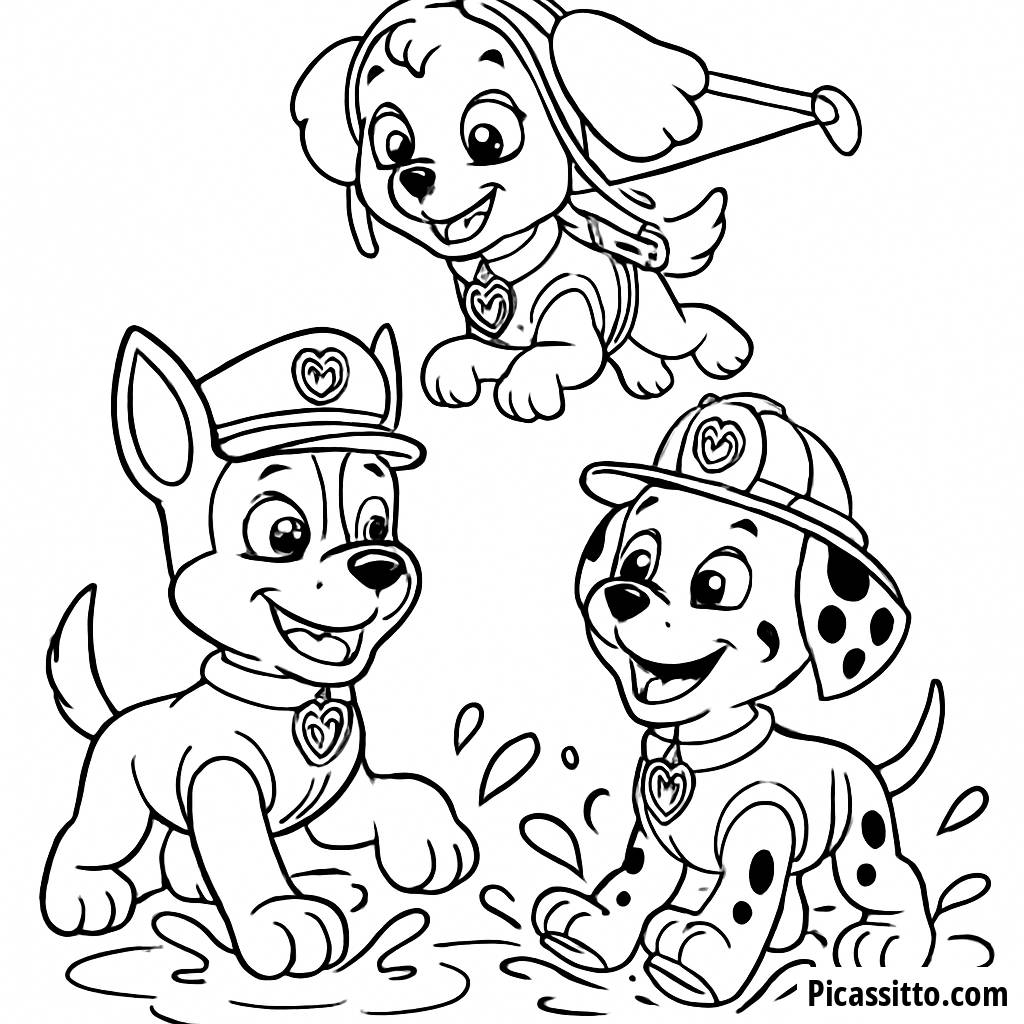 Página de Colorir do Chase e Marshall Brincando em uma Poça