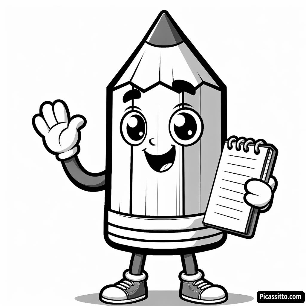 Baixe esta página para colorir gratuita e imprimível com um lápis sorridente, perfeita para a diversão escolar! As crianças vão adorar dar vida a este personagem.