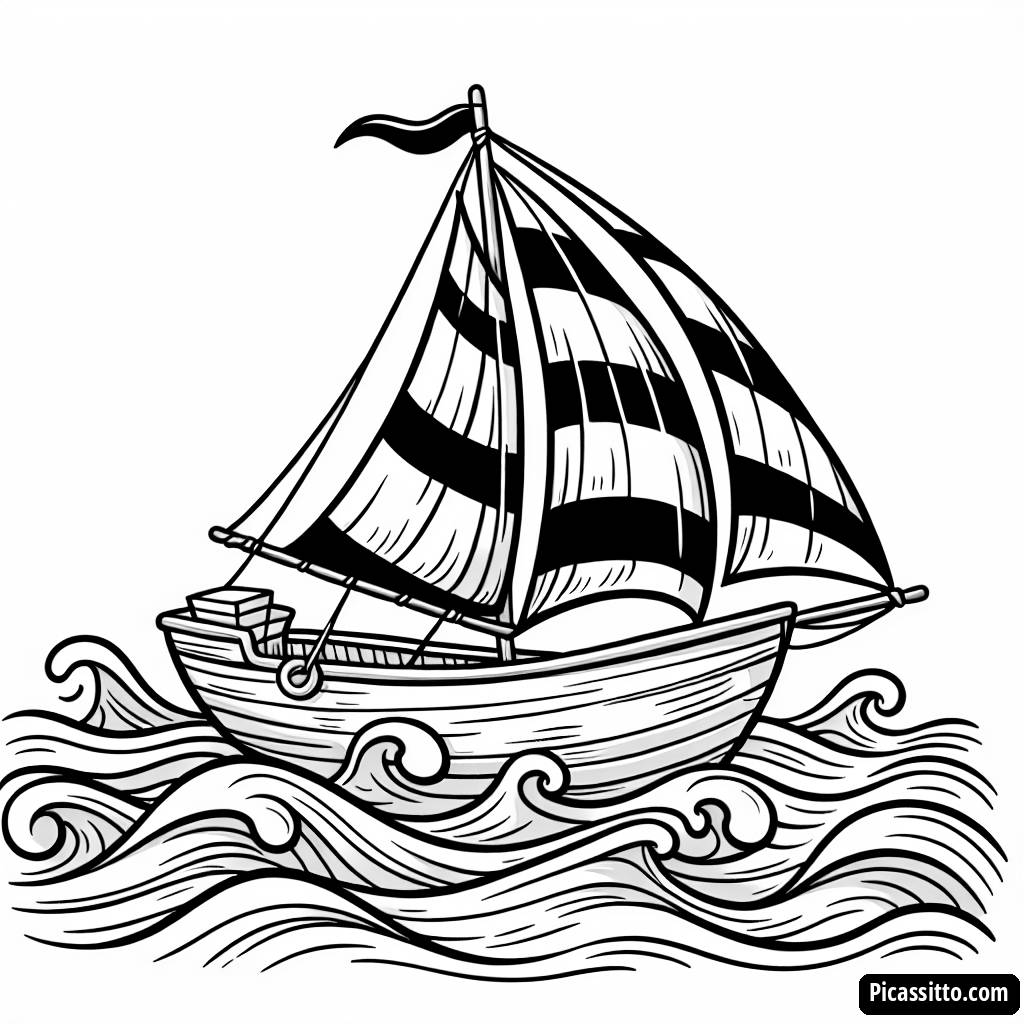 Aproveite esta página para colorir de um barco alegre, gratuita e imprimível, perfeita para estimular a criatividade das crianças enquanto dão vida às velas coloridas!