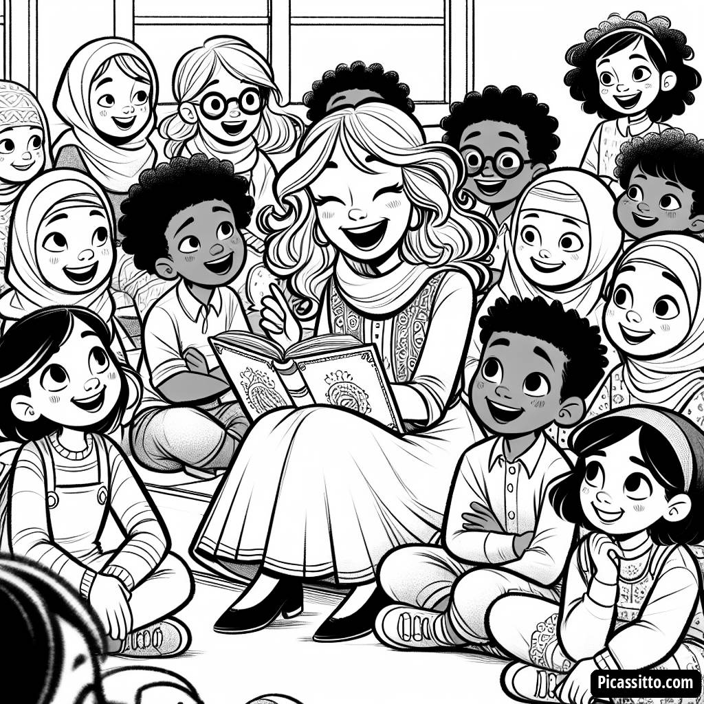 Baixe esta página de colorir grátis de uma professora alegre lendo para alunos felizes! Perfeita para pequenos artistas se divertirem enquanto aprendem sobre profissões.