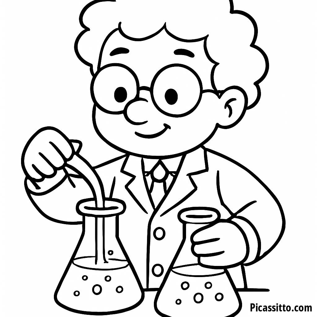 Baixe esta página para colorir gratuita e imprimível apresentando um cientista de jaleco misturando líquidos coloridos em frascos. Perfeito para inspirar as mentes jovens!