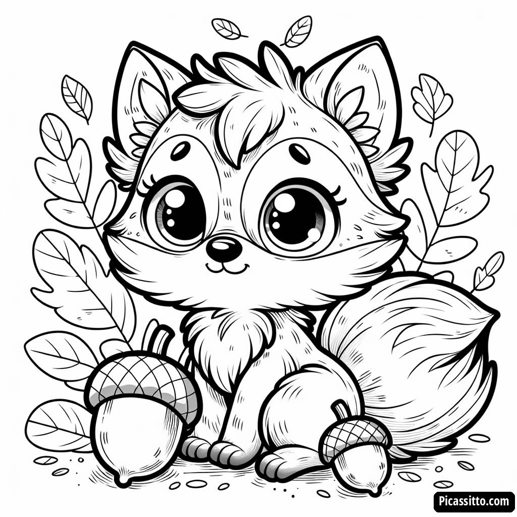Aproveite uma página para colorir gratuita do Eevee cercado por lindas folhas de outono e bolotas! Perfeita para fãs de Pokémon de todas as idades.