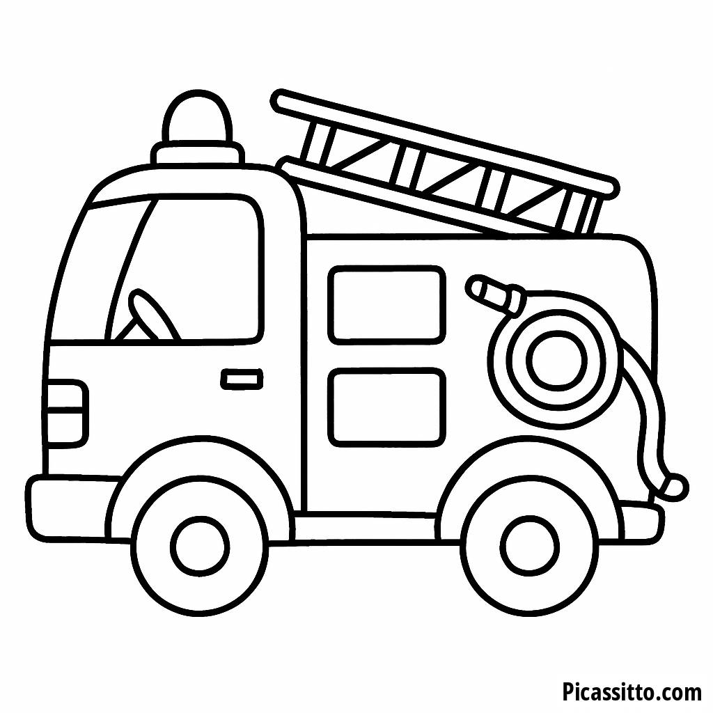 Baixe esta página para colorir gratuita de um caminhão de bombeiros empolgante, com um caminhão vermelho brilhante, uma escada extensível e uma mangueira de água. Perfeito para pequenos bombeiros!