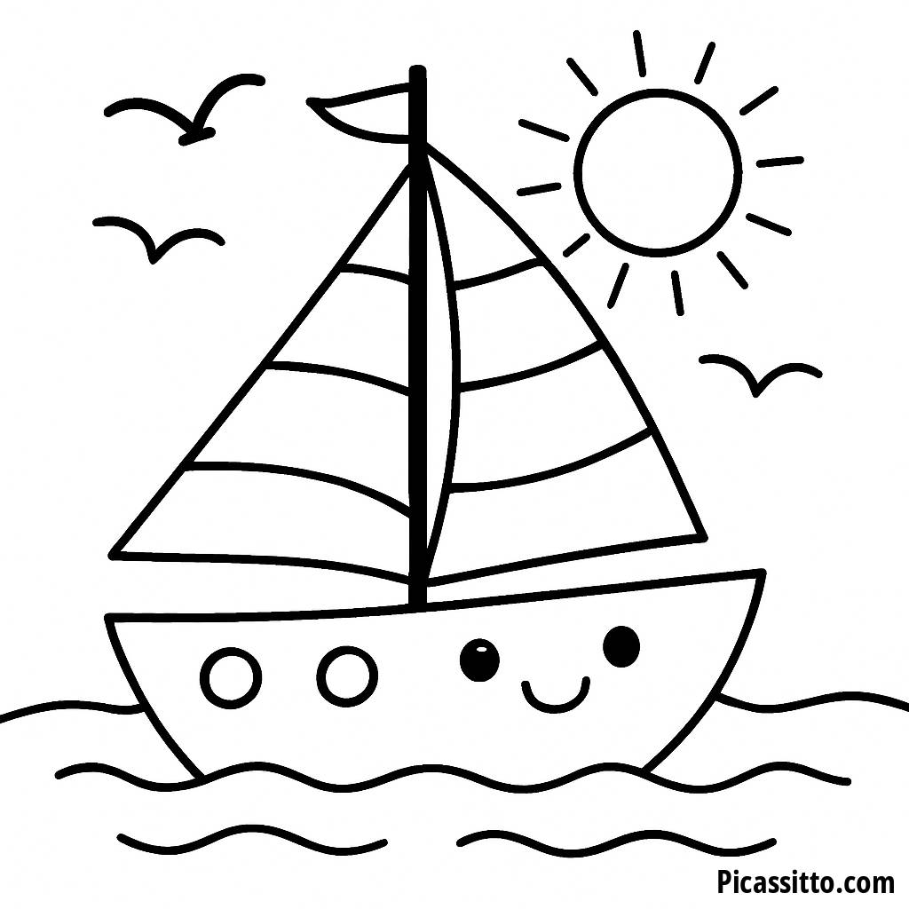 Наслаждайтесь этой бесплатной и распечатываемой раскраской с радостным парусником и цветными парусами на спокойной воде, идеальной для детей, которые любят море!