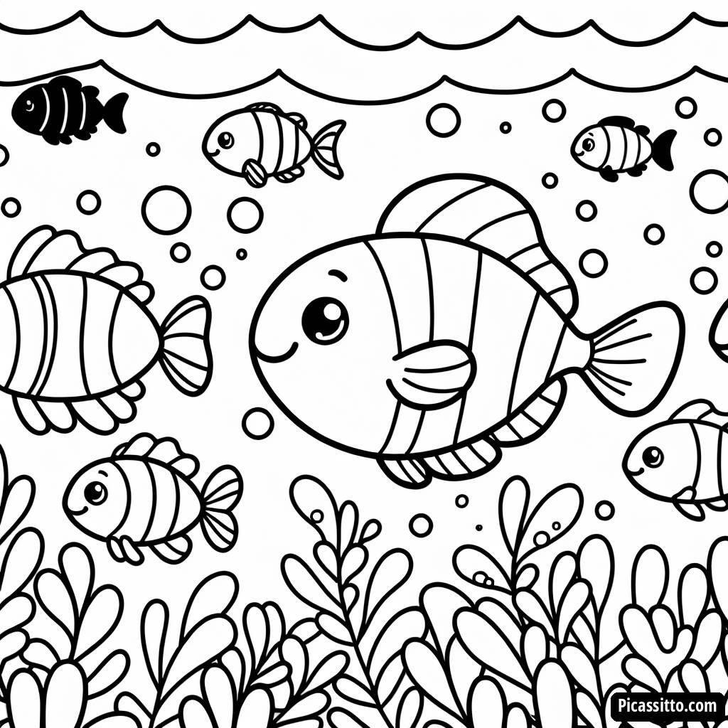 Погрузитесь в творчество с этой бесплатной и распечатываемой раскраской с яркой школой рыб, плавающих вместе!
