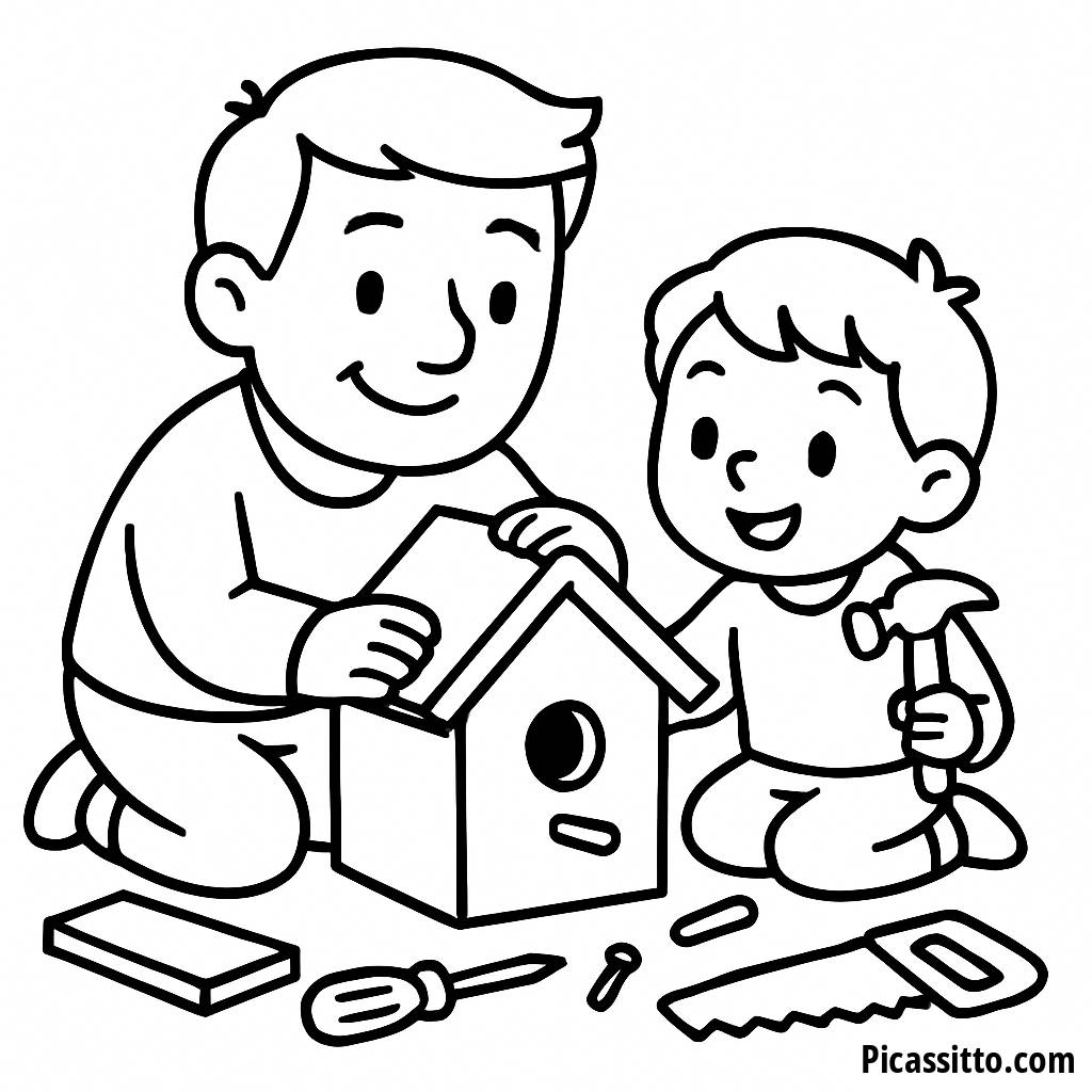 Наслаждайтесь этой бесплатной и печатной раскраской, изображающей отца и ребенка, строящих скворечник вместе. Идеально для празднования Дня отца!