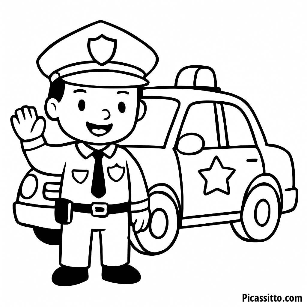 Скачайте и распечатайте эту бесплатную раскраску доброго полицейского, идеально подходящую для юных художников, любящих правопорядок!