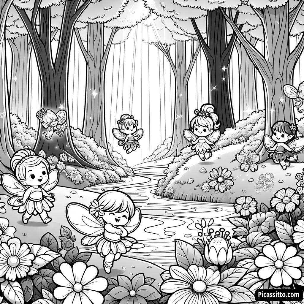 Исследуйте волшебный мир с нашей бесплатной раскраской Волшебного Леса, где феи танцуют вокруг ярких цветов и сверкающего ручья!